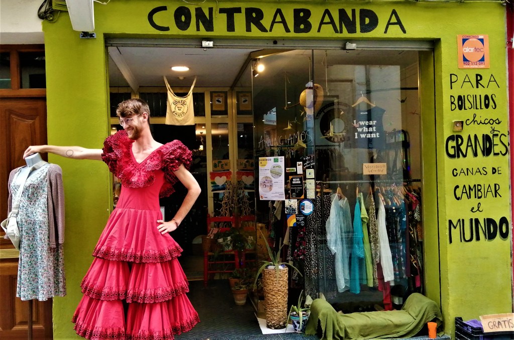 En ContraBanda hay un baúl viejo pintado de oro con todos los trapitos y las prendas incomprendidas, o demasiado «fast-fashion» para estar vendidas a precio decente. ¡Todo a 2€! Paraíso de recicladorxs y buscadorxs de cremalleras, telas y botones. Siempre he querido escribir en la tapadera de este baúl «La Segunda mano es un baúl de tesoros. No nos gusta que te encasillen. En ContraBanda te invitamos a que explores, rebusques, a que TE busques, pasando por alto las categorías que la moda y la sociedad nos impone de forma sutil. Y que, encontrando un estilo en el que te sientas bien, puedas expresar esta creatividad que está en ti».